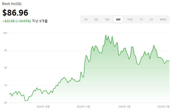 > 결론: 블록(Block Inc.)은 디지털 결제, 개인 금융, BNPL, 블록체인 금융을 결합한 혁신적인 핀테크 기업으로, 글로벌 시장에서 지속 성장할 가능성이 크다. 특히 Cash App, Afterpay 등의 성공적인 운영과 블록체인 기술 도입이 주가 상승의 핵심 요인이 될 전망이다.